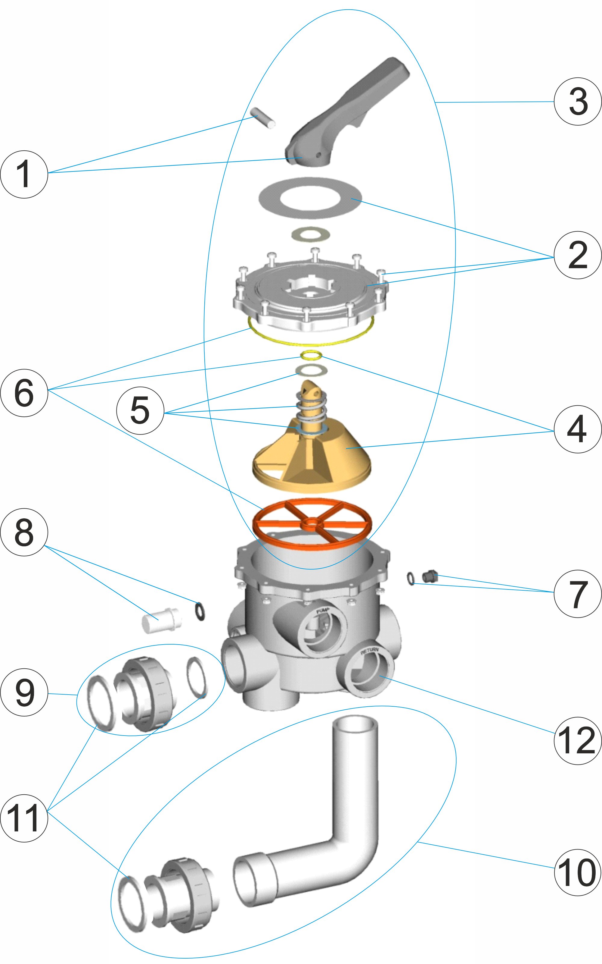 15 MPV15/HSTEC VALVULA SELECTORA 6 VIAS 1 1/2" - 2" + ENLACE "